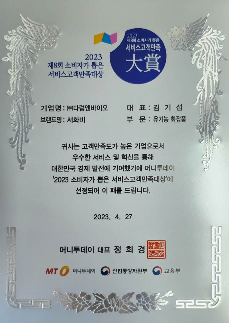 머니투데이 2023 제8회 소비자가 뽑은 서비스고객만족대상