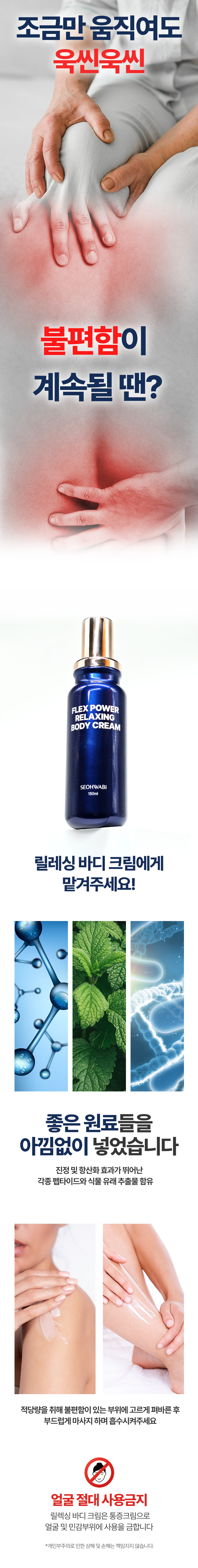 [Relaxing Body Cream] Take an appropriate amount and apply evenly to areas of discomfort, gently patting to help absorption