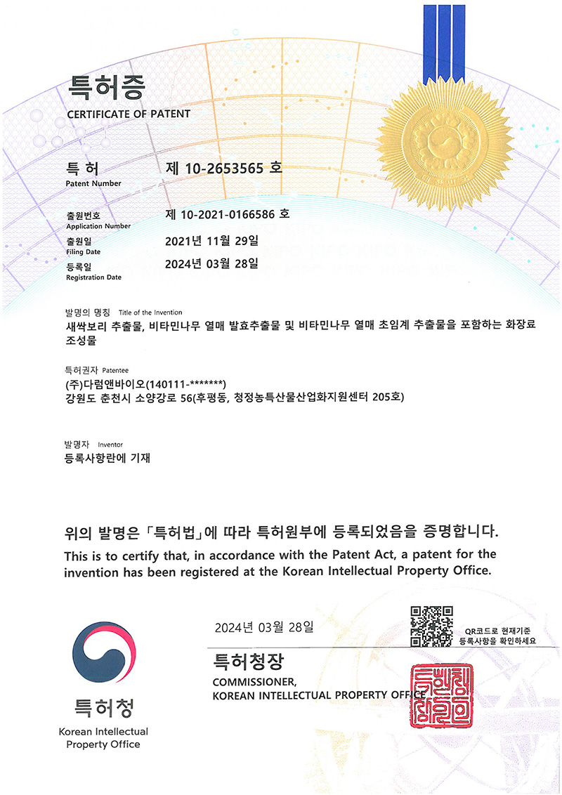 (기술이전)새싹보리 추출물을 포함하는 미백 및 주름개선용 화장료 조성물 |