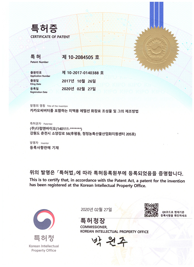 카카오씨버터를 포함하는 미백용 에멀션 화장료 조성물 및 그의 제조방법 |
